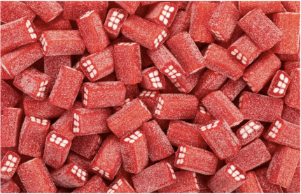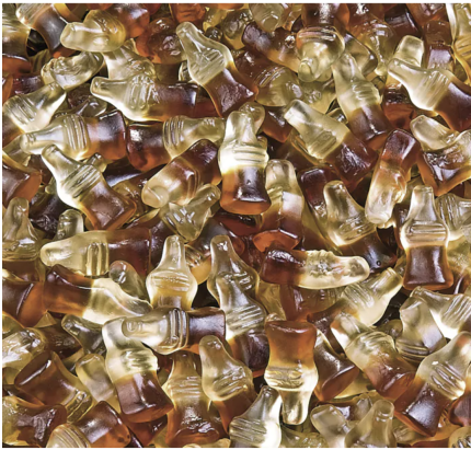 GOMAS SABOR COLA / Ingredientes: Xarope de glucose; açúcar; água; gelatina; dextrose; acidificante: ácido cítrico; aroma; xarope de caramelo; agentes de revestimento: cera de abelhas (branca e amarela), cera de carnaúba. Pode conter vestígios de leite, trigo.